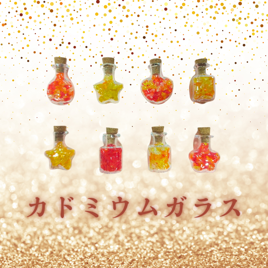 日本ではすでに生産されていない、カドミウムガラスを封入した特別な小瓶です。ブラックライト(UVライト)を当てると、幻想的に蛍光します✨